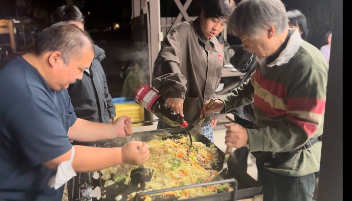 お肉とやさいをたくさん買って、焼いて食べました!焼きそばも食べて、最後はマシュマロをあぶってたべました〜!みんなお腹いっぱい!